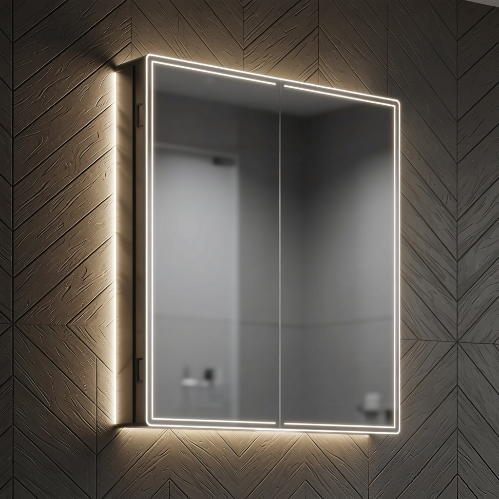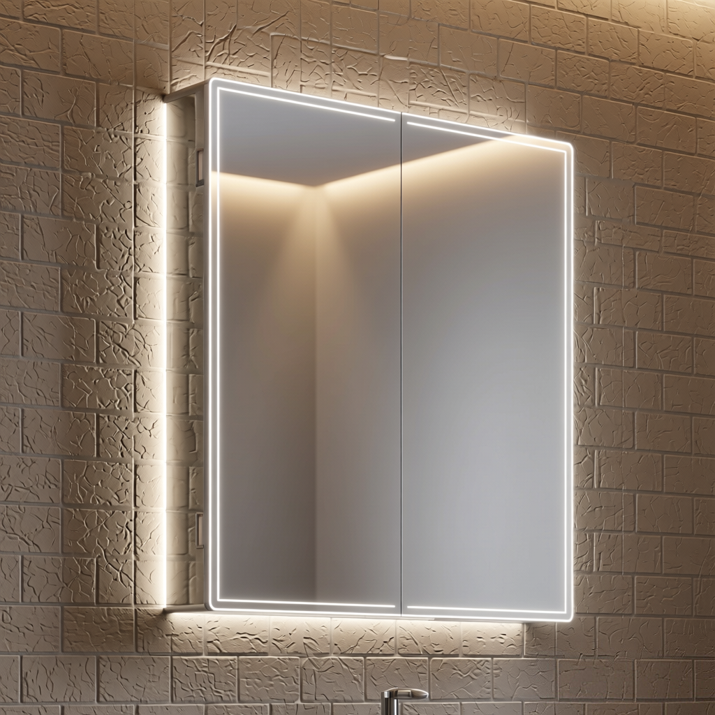 Soft curves and precision illumination combined with amazing functionality, This is the complete bathroom cabinet package. Its understated appearance of seamless curves, ambient lighting and mirrored sides ensure it’s style versatility, perfect for bathrooms of all shapes, sizes and designs.
